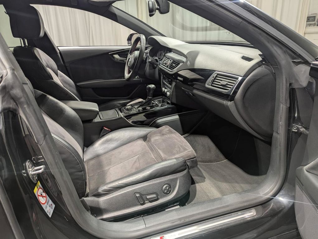 – – Sonderausstattung: – Audi music interface, Ausstattungs-Paket: S line Sport / Plus, Außenoptik Audi exclusive schwarz, Außenspiegel mit Memoryfunktion, Einparkhilfe vorn und hinten, optisch (APS Plus), Innenausstattung: Dekoreinlagen Klavierlack, schwarz, Innenspiegel mit Abblendautomatik, Licht-Paket, Multi-Media-Interface MMI Navigation Plus mit MMI Touch, Perleffekt-Lackierung, Rear Seat Entertainment RSE (Vorbereitung), Sitzbezug / Polsterung: Alcantara / Leder mit Logo-Prägung in Vordersitzlehnen, Sitze vorn elektr. verstellbar (links mit Memory), Sitzheizung vorn, Verglasung hinten abgedunkelt (Privacyverglasung) – – Weitere Ausstattung: – Airbag Fahrer-/Beifahrerseite, Antriebs-Schlupfregelung (ASR) mit EDS, Audi Drive Select, Außenspiegel asphärisch, links, Außenspiegel asphärisch, rechts, Außenspiegel elektr. verstell- und heizbar, beide, Außenspiegel Wagenfarbe, Bremsassistent, Fahrassistenz-System: Anfahr-Assistent (hold assist), Fensterheber elektrisch vorn + hinten, Fondsitzanlage (2 Sitzplätze), Gepäckraumklappe elektr. betätigt (öffnen + schliessen), Heckklappe mit Spoiler integriert, Heckleuchten LED, Heckspoiler (elektrisch ausfahrbar), Isofix-Aufnahmen für Kindersitz, Karosserie: 4-türig, Komfort-Klimaautomatik 2-Zonen, Kopf-Airbag-System (Sideguard), Kraftstofftank: 75 Ltr., Lenksäule (Lenkrad) mech. Höhen-/Längsverstellung, Mittelarmlehne hinten mit Fach, Motor 3,0 Ltr. – 230 kW V6 24V TDI, Multi-Media-Interface MMI Basic / MMI Radio, Multifunktionsanzeige / Bordcomputer, Parkbremse elektro-mechanisch, Reifenkontroll-Anzeige, Schadstoffarm nach Abgasnorm Euro 5, Schalt-/Wählhebelgriff Leder, Seitenairbag vorn, Start/Stop-Anlage, Wärmeschutzverglasung grün getönt – – , Innenspiegel automatisch abblendend, Sitzheizung vorn
